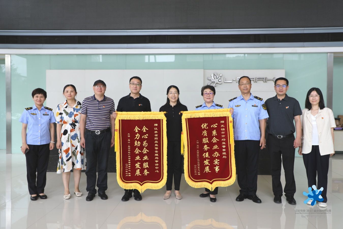 6月24日,江蘇省藥品監(jiān)督管理局審評中心醫(yī)療器械審評科黨支部、無錫市市場監(jiān)督管理局機關七支部與惠山生命園黨總支舉辦共建活動,省藥監(jiān)審評中心副主任何益、醫(yī)療器械審評科支部書記傅金德,市市場監(jiān)管局黨組成員、副局長于文霞,二級調(diào)研員夏一明,醫(yī)療器械處處長兼機關七支部書記徐波,生命園總經(jīng)理鄭敏,園區(qū)總支書記兼副總經(jīng)理婁磊等參加活動。