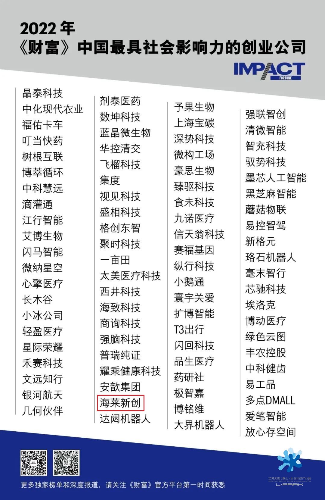 7月28日,世界著名財(cái)經(jīng)雜志《財(cái)富》中文網(wǎng)發(fā)布2022年度“中國最具社會(huì)影響力的創(chuàng)業(yè)公司”榜單,共有84家創(chuàng)業(yè)公司上榜,江蘇海萊新創(chuàng)醫(yī)療科技有限公司憑借針對(duì)中國人群首創(chuàng)的腫瘤電場(chǎng)治療(TTF)解決方案成功入選。