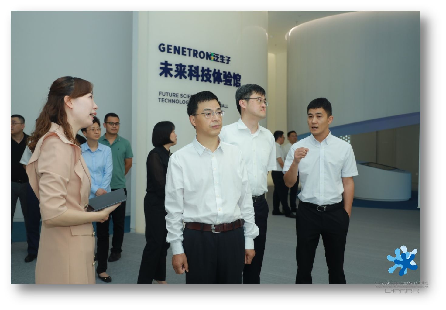 在E區(qū)新落成投運(yùn)的泛生子癌癥早篩中心總部基地,調(diào)研人員在商務(wù)副總監(jiān)黃丹的陪同下參觀了基地一樓展廳、科技體驗(yàn)館和二樓的研發(fā)中心。泛生子是全球精準(zhǔn)醫(yī)療領(lǐng)域行業(yè)領(lǐng)軍,入選《麻省理工科技評(píng)論》“2020年全球50家最聰明公司”;全球獨(dú)家、中國首創(chuàng)的液體活檢肝癌早篩產(chǎn)品“甘預(yù)”獲美國FDA突破性醫(yī)療器械認(rèn)證,落地施行惠山區(qū)“肝癌早篩綜合防控”示范項(xiàng)目,打造全國低肝癌示范城市。