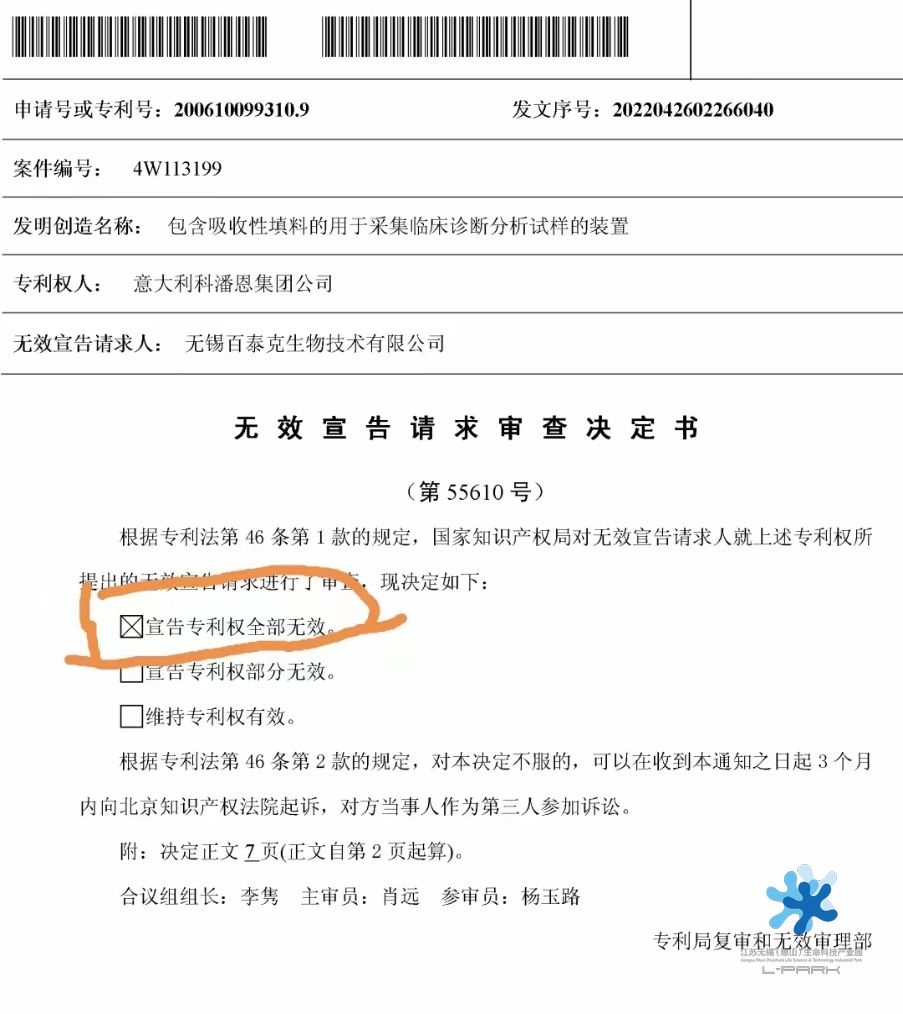 Copan中國(guó)專利無(wú)效宣告請(qǐng)求審查決定書