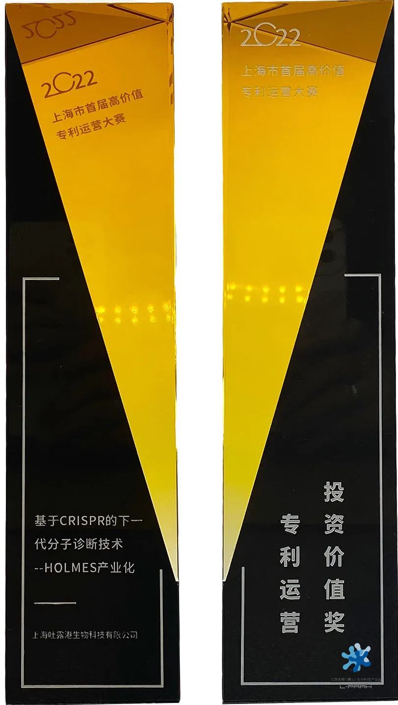 11月3日,由上海市科學(xué)技術(shù)委員會(huì)、上海市知識(shí)產(chǎn)權(quán)局聯(lián)合主辦,上海技術(shù)交易所、上海市高??萍及l(fā)展中心、上海知識(shí)產(chǎn)權(quán)服務(wù)中心聯(lián)合承辦的上海市首屆高價(jià)值專(zhuān)利運(yùn)營(yíng)大賽決賽落下帷幕,吐露港生物的“基于CRISPR的下一代分子診斷技術(shù)——HOLMES產(chǎn)業(yè)化”榮獲專(zhuān)利運(yùn)營(yíng)投資價(jià)值獎(jiǎng),為本次大賽企業(yè)組最高獎(jiǎng)項(xiàng)。