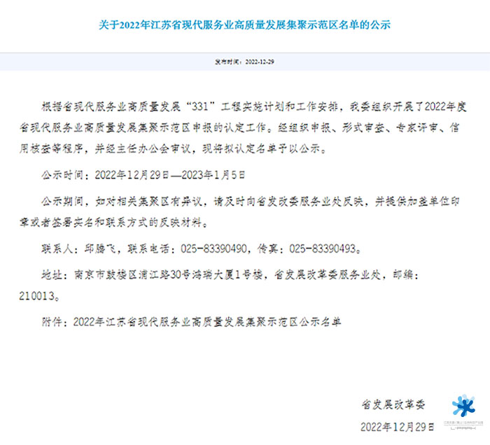 日前,省發(fā)改委關(guān)于2022年江蘇省現(xiàn)代服務(wù)業(yè)高質(zhì)量發(fā)展集聚示范區(qū)名單的公示結(jié)束,全省共30家單位獲得認(rèn)定,惠山生命園作為無錫唯一入選。