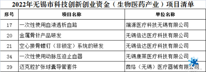 生物醫(yī)藥產業(yè)專項中,端源醫(yī)療的“一次性使用血液透析血路”和茵絡醫(yī)療的“邁克腔擴張球囊導管套件”,倍達醫(yī)療一舉入選 “金屬骨針產品研發(fā)”和“空心接骨螺釘(非鎖定)系統(tǒng)研發(fā)” 兩項目。