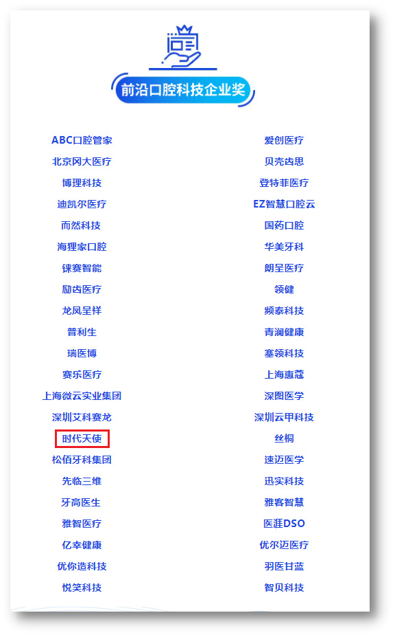 10月14-17日,第二十六屆中國國際口腔器材展覽會(DenTech China 2023) 在上海世博展覽館舉行。展會期間,由畢馬威中國主辦,中國非公立醫(yī)療機構協(xié)會口腔分會擔任學術指導,動脈網(wǎng)擔任戰(zhàn)略協(xié)辦的《中國社會辦口腔醫(yī)療50企業(yè)報告》正式發(fā)布;時代天使和高峰醫(yī)療雙雙榮獲 “尖端口腔產(chǎn)業(yè)制造獎”,時代天使再獲“前沿口腔科技企業(yè)獎”。