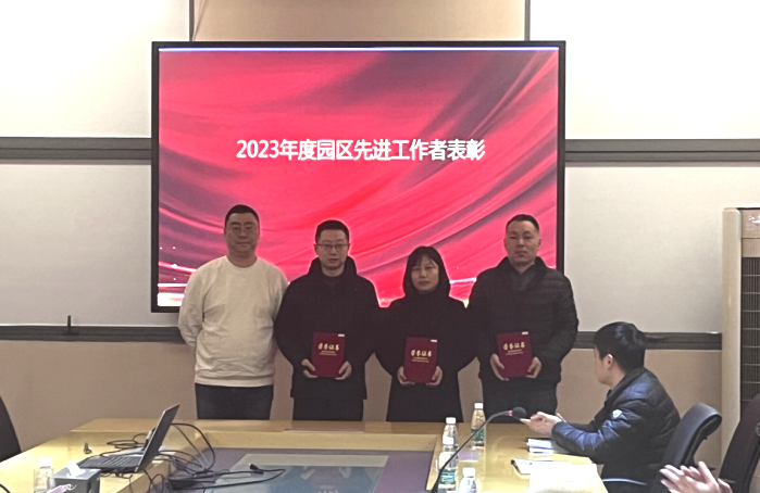 會議最后對獲得2023年度園區(qū)先進(jìn)工作者的三位同志進(jìn)行了表彰。