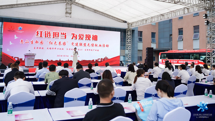 5月30日,“紅鏈擔(dān)當(dāng) 為愛挽袖”惠山經(jīng)開區(qū)“紅色基因”生物醫(yī)藥產(chǎn)業(yè)鏈黨建聯(lián)盟無償獻(xiàn)血活動(dòng)在惠山生命園C區(qū)中央廣場舉行,無錫市公民獻(xiàn)血領(lǐng)導(dǎo)小組辦公室主任、市衛(wèi)健委副主任過憶,惠山區(qū)副區(qū)長邱曉東,無錫市中心血站站長許路、黨委書記侯琳琳,惠山經(jīng)開區(qū)黨工委委員、紀(jì)工委書記徐斌銘,惠山區(qū)衛(wèi)健委主任徐旭昕等主要領(lǐng)導(dǎo)出席。